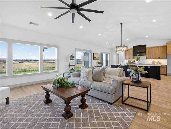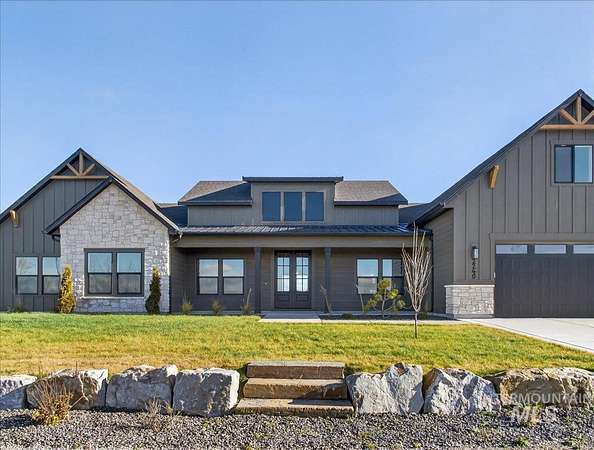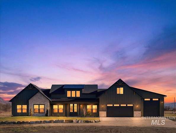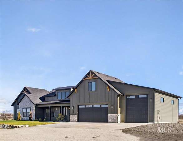 Discover luxury country living at its finest in this exceptional Pathway Builders new construction home, on 5.38 acres in Emmett, Idaho. Offering 2,985 sq ft of modern elegance, this thoughtfully designed residence features 4 spacious bdrms, 2.5 bths, a dedicated office & a highly versatile upstairs bonus rm-perfect as a 5th bdrm, craft rm, or additional living space. The main living area makes a striking impression w/breathtaking vaulted ceilings, a stunning fireplace & an expansive picture window that floods the space w/natural light while capturing panoramic mountain views. At the heart of the home, the chef's kitchen showcases a gas cooktop/oven, elegant quartz countertops & a spacious walk-in pantry, ideal for everyday living & entertaining. Step outside to the covered patio, the perfect setting to unwind, host gatherings & take in Idaho's unforgettable mountain sunsets. An oversized 3-car garage w/ RV bay complements the generous acreage, offering endless possibilities for horses, a future shop, recreational toys, or even an ADU-ideal for multi-generational living. Water rights included, no CCRs or HOA, enjoy the freedom to truly make this property your own. Located near the Payette River, you'll have quick access to fishing, boating & outdoor recreation. Experience the perfect blend of serene country living & modern convenience just minutes from Emmett, New Plymouth & I-84.