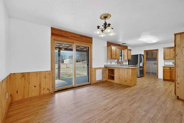 The home features a spacious open living area and a light-filled kitchen with serving bar and walls of windows overlooking the serene, natural surroundings. The private primary suite includes a modern bath with dual vanities and two walk-in closets, while three additional bedrooms are thoughtfully separated for added privacy. Step outside to an expansive covered wood deck, perfect for morning coffee, entertaining, or simply enjoying the abundance of wildlife and peaceful views. The property boasts two ponds, including one with a dock ideal for fishing. Additional improvements include two barns, a storage building, and a carport suitable for boat or RV parking--perfect for hobbyists, outdoor lovers, or those seeking a true country lifestyle. This rare opportunity won't last long--hurry and claim your slice of paradise!