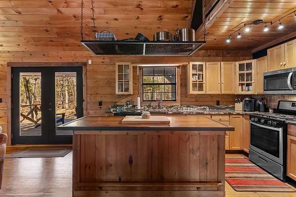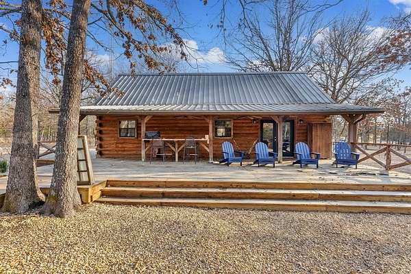 Tucked away on 8.2 heavily wooded acres, this charming country cabin is the kind of place you come to slow down, unplug, and breathe. Set on a quiet paved county road, it feels worlds away from the city--yet easy to get to--making it ideal as a full-time residence, weekend escape, or proven vacation rental. The exterior sets the tone with a classic log-style design, a top-of-the-line standing seam metal roof, and a massive back porch that's made for rocking chairs, morning coffee, and watching the sun dip below the trees. At night, the stars put on a show you just don't get in town. Inside, the cabin is warm, inviting, and full of character. The vaulted living room ceiling and wood-burning stove create a cozy lodge feel, perfect for cool East Texas evenings. The open layout flows easily into a well-appointed kitchen with rustic cabinetry and modern appliances, making it just as functional as it is charming. Two comfortable bedrooms and one full bath provide everything you need without excess--simple, efficient, and peaceful. Outside, the property continues to impress with a storage shed and a large additional building that could serve as a shop, hobby space, or extra storage. The wooded acreage offers privacy, wildlife, and endless possibilities for trails, gardens, or simply enjoying nature. This property can be purchased fully furnished, including a lawn mower, for a little more--making it truly turnkey whether you plan to Airbnb it, use it as a vacation home, or make the permanent move to country living. If you've been dreaming of a place where life feels quieter, nights are darker, and nature surrounds you--this one delivers.