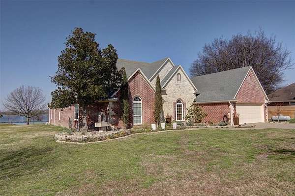 Discover your East Texas waterfront dream home on legendary Lake Fork. Famous for world-class fishing and breathtaking lake views. This beautiful 2,387 sq ft brick and stone home sits on 2.78 acres plus leaseback, offering plenty of space (4 bedrooms - 2 baths; one bedroom being used as office), privacy, and direct access to the water from your oversized single slip boathouse. Inside, you’ll find a thoughtfully designed 4B & 2B layout with room for both relaxing and entertaining. The cozy gas fireplace anchors the living room, creating the perfect gathering space after a day on the lake. Enjoy working from home in the dedicated office, host guests in the formal dining room, and start your mornings in the breakfast area with scenic views of the property and water. One of the home’s standout features is the glass-enclosed sunroom, where you can unwind while taking in the stunning East Texas sunsets over the lake. Outside, the property truly shines. A 25-foot deep pond adds charm and additional fishing opportunities, while the impressive 32×60 shop with 12-foot overhangs on both ends provides abundant space for toys, tools and projects. With plenty of storage and room to roam, this property is ideal for full-time living or a weekend getaway. All of this is located within convenient reach of the Dallas–Fort Worth Metroplex, making it easy to enjoy lake life while staying connected to the city. Don’t miss this rare opportunity to own a waterfront property on Lake Fork. Schedule your private showing today and experience East Texas lake living at its finest!