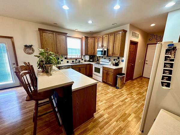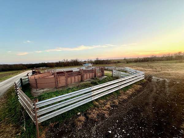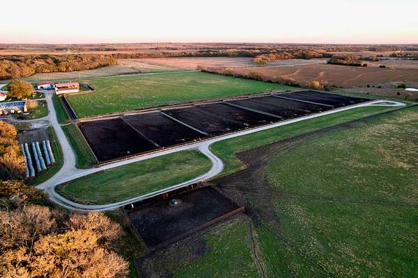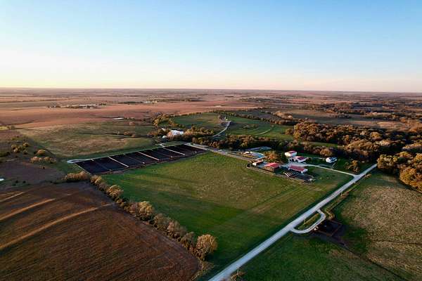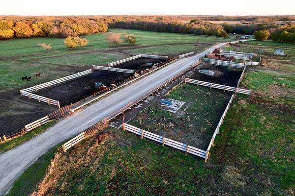 On behalf of the late Jaret Moyer family, we proudly presents 678-acres of premium Lyon County land to the public via Hybrid Auction. Located north of Emporia, this land will be offered in multiple parcels and will be attractive to multiple Buyer classes including ag producers, investors, hunters, and those looking for a beautiful home in the country or a location to build. Land is all located within a 2-mile radius and will sell in 8 tracts featuring individual parcels and combinations thereof. Tract 1 totals 160 +/- acres and is a beautiful Headquarter unit with a nice 5 bed, 3.5 bath home, multiple nice outbuildings including a large heated shop, fancy state of the art cattle processing facility, commodity shed, hay shed, extremely well designed and built cattle backgrounding lot with 800hd (700lb or less) capacity, and five additional grass traps each having 100' of adjoining concrete bunks with pens. Tract 2 totals 160+/- acres with paved road access, high quality native grass pasture/meadow with productive class II and III soils, and adjoining utilities. Tract 3 is the combination of tracts 1 and 2 and totals 320 +/-. Tract 4 totals 80 +/- acres and features productive tillable type soils, heavy timber and creek with excellent deer and turkey hunting, pens/concrete bunks, and adjoining utilities. Tract 5 totals 96 +/- acres and features a nice large pinwheel shaped cattle backgrounding lot with 1350' of concrete bunk, pipe and guardrail pens, a nice loadout, and native grass meadow. Tract 6 totals 54 +/- acres and features native grass meadow along with adjoining utilities for those looking to build on an affordable sized acreage in the country. Tract 7 is the combination of tracts 5 and 6 and totals 150 +/- acres. Tract 8 totals 128 +/- acres with cattle feeding pens and loadout, both native and cool season grasses, and 1/2 mile of creek with good deer and turkey hunting. The auction will be held on January 14th, 2026 at 6:30pm at Champions Landing in Emporia, KS (1801 Rural Street). Tract 1 encompasses 160 +/- acres and is one of the most well-built and cared-for cattle headquarter units you are going to find anywhere. The facility is extremely well designed with no expenses spared in its construction with a vast majority of improvements built since 2004. As you enter the property from the east you will see the beautiful home on the parcel located north of the driveway. This home was constructed in 2004 and is well cared for and in good condition with roughly 3000sf of finished living space. The home is a 1.5-story, 5-bed, 3.5-bath design home with finished basement and attached 2-car garage. As you move west from the home you reach the large 3200sf steel-framed heated and insulated shop with full concrete floor, large concrete approach, two large overhead doors, and oil changing pit. Additional sheds in excellent condition on the property include a 4800sf steel framed hay shed, 1584sf concrete and steel framed 4-bay commodity shed, and 4800sf state of the art processing facility. Two additional older sheds are located on the property that feature over 6500sf of space for equipment and supply storage. The processing facility on the property is extremely well designed and features an extensive set of adjoining pipe and guardrail sorting/holding pens along with four horse runs with automatic waterers connected to horse stalls on the inside of the building. The processing building is steel framed with full concrete floor, water, extremely nice interior pens, a double hydraulic alley, Silencer chute with scales, semi and trailer loadouts, good lighting, heaters by chute, and finished space that includes a heated and cooled office, tack room, and additional room for Silencer motor. Improvements on this property are very thoughtfully designed and are in great condition. As you head west from the improvement site on the property you pass by three silage pits on the right si