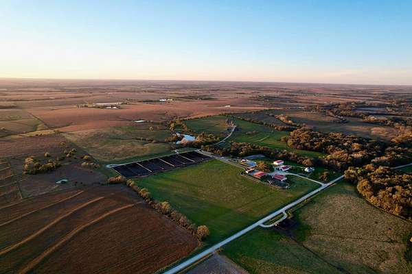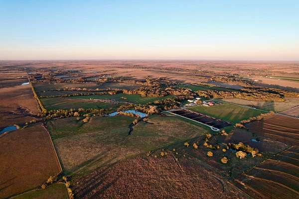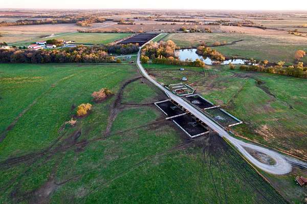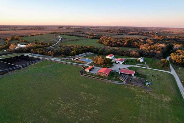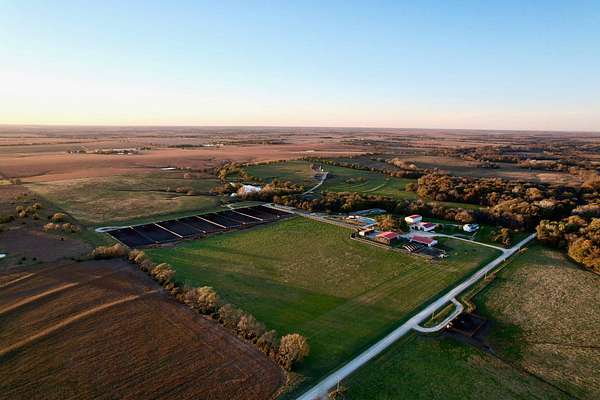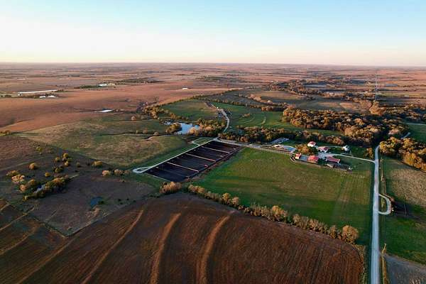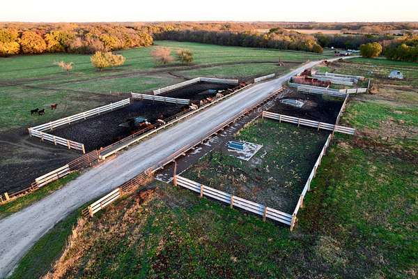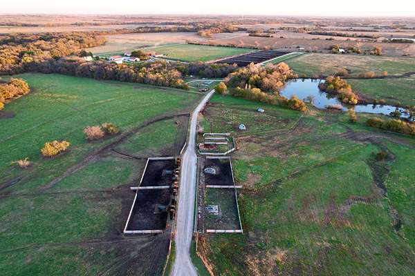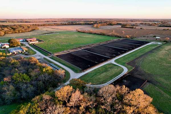 On behalf of the late Jaret Moyer family, we proudly presents 678-acres of premium Lyon County land to the public via Hybrid Auction (both in person and online). Located north of Emporia, this land will be offered in multiple parcels and will be attractive to multiple Buyer classes including ag producers, investors, hunters, and those looking for a beautiful home in the country or a location to build. Land is all located within a 2-mile radius and will sell in 8 tracts featuring individual parcels and combinations thereof. Tract 1 totals 160 +/- acres and is a beautiful Headquarter unit with a nice 5 bed, 3.5 bath home, multiple nice outbuildings including a large heated shop, fancy state of the art cattle processing facility, commodity shed, hay shed, extremely well designed and built cattle backgrounding lot with 800hd (700lb or less) capacity, and five additional grass traps each having 100' of adjoining concrete bunks with pens. Tract 2 totals 160+/- acres with paved road access, high quality native grass pasture/meadow with productive class II and III soils, and adjoining utilities. Tract 3 is the combination of tracts 1 and 2 and totals 320 +/- acres. Tract 4 totals 80 +/- acres and features productive tillable type soils, heavy timber and creek with excellent deer and turkey hunting, pens/concrete bunks, and adjoining utilities. Tract 5 totals 96 +/- acres and features a nice large pinwheel shaped cattle backgrounding lot with 1350' of concrete bunk, pipe and guardrail pens, a nice loadout, and native grass meadow. Tract 6 totals 54 +/- acres and features native grass meadow along with adjoining utilities for those looking to build on an affordable sized acreage in the country. Tract 7 is the combination of tracts 5 and 6 and totals 150 +/- acres. Tract 8 totals 128 +/- acres with cattle feeding pens and loadout, both native and cool season grasses, and 1/2 mile of creek with good deer and turkey hunting. The auction will be held on January 14th, 2026 at 6:30pm at Champions Landing in Emporia, KS (1801 Rural Street). Tract 3 is the combination of Tract 1 and Tract 2 and encompasses 320 +/- acres and is one of the most well-built and cared-for cattle headquarter units you are going to find anywhere with an additional 160-acres of native grass. The facility is extremely well designed with no expenses spared in its construction with a vast majority of improvements built since 2004. As you enter the property from the east you will see the beautiful home on the parcel located north of the driveway. This home was constructed in 2004 and is well cared for and in good condition with roughly 3000sf of finished living space. The home is a 1.5-story, 5-bed, 3.5-bath design home with finished basement and attached 2-car garage. As you move west from the home you reach the large 3200sf steel framed heated and insulated shop with full concrete floor, large concrete approach, two large overhead doors, and oil changing pit. Additional sheds in excellent condition on the property include a 4800sf steel framed hay shed, 1584sf concrete and steel framed 4-bay commodity shed, and 4800sf state of the art processing facility. Two additional older sheds are located on the property that feature over 6500sf of space for equipment and supply storage. The processing facility on the property is extremely well designed and features an extensive set of adjoining pipe and guardrail sorting/holding pens along with four horse runs with automatic waterers connected to horse stalls on the inside of the building. The processing building is steel framed with full concrete floor, water, extremely nice interior pens, a double hydraulic alley, Silencer chute with scales, semi and trailer loadouts, good lighting, heaters by chute, and finished space that includes a heated and cooled office, tack room, and additional room for Silencer motor. Improvements on this property are very thoughtfully designed and are in great condition. As you