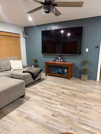 - Ceiling Fans, Fireplace Screen, Shades/Blinds, Smoke Detector, Vinyl Flooring