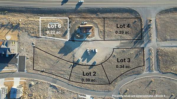 From Highway 287, enter the North Forty subdivision on Laura Lane. Take first right onto Olive Way. Park in common area in front of Sure Shot Coffee. Lot 6 is to the east.