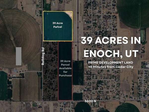 Est $9,716/moRare 39-acre parcel in rapidly growing Cedar City, perfect for residential, commercial, mixed-use, or agricultural projects. Enjoy peaceful rural space just minutes from city amenities with plenty of room for your vision. Combine with the adjacent 40-acre parcel for a full 79-acre opportunity-ideal for larger developments or expansive projects. Cedar City's growth and rising demand make this a strategic investment.