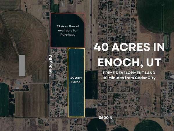 Est $9,965/mo40 acres of prime land in Cedar City, ready for residential, commercial, mixed-use, or agricultural development. This parcel offers space, privacy, and convenient access to city amenities. Adjacent 39-acre parcel available, allowing for a combined 79-acre development opportunity--perfect for investors or developers seeking scale. Cedar City's booming growth ensures long-term value.