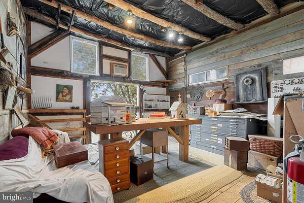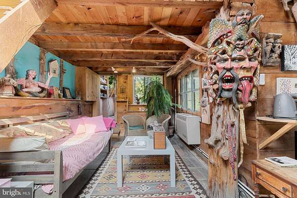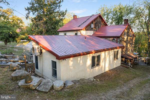 Tucked away beyond a winding drive, this 10+ acre private estate in Lower Mount Bethel unfolds as a rare opportunity to own a true countryside compound - where history, creativity, and lifestyle converge. At its center stands a late-18th century stone farmhouse, thoughtfully refined to balance time-honored craftsmanship with modern comfort. Exposed beams, original stonework, and wide-plank floors create a sense of permanence, while updated systems and finishes deliver everyday livability. What sets this property apart is not just the home - but the ecosystem surrounding it. A collection of distinctive outbuildings expands the experience and functionality of the estate, including a classic Pennsylvania bank barn ideal for studio, workshop, or creative use, a rustic cabin retreat, a vaulted guest house, and a charming studio cottage that offers flexibility for guests, workspace, or extended living. Additional features include a woodland sauna, greenhouse, chicken coop, and multiple stone outbuildings, all contributing to a property designed for both inspiration and utility. The land itself is equally compelling. Spanning over 10 acres, the grounds offer a blend of open meadow and wooded landscape with fenced paddocks, raised garden beds, a koi pond, and a network of trails leading to Little Martins Creek. The setting provides privacy, usability, and a connection to nature that is increasingly difficult to replicate. Enrolled in Pennsylvania's Clean & Green program, the property benefits from favorable tax treatment while maintaining its agricultural character. Whether envisioned as a private residence, creative retreat, multi-generational living environment, or lifestyle-driven escape, this estate offers a level of versatility rarely found in the market. Ideally located approximately 90 minutes from New York City and under two hours to Philadelphia, this is a property that delivers both seclusion and accessibility. This is more than a home - it is a fully realized rural compound with history, purpose, and long-term potential.