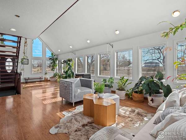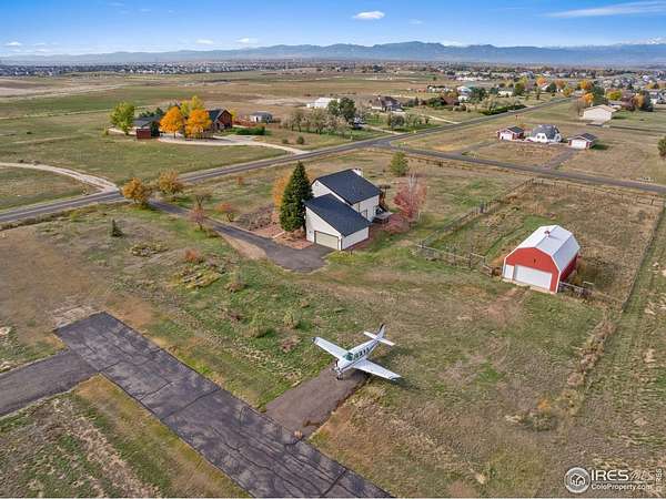 Big front range views, land to sprawl out AND located in a PRIVATE AIRPARK, this home is waiting for it's next aviation enthusiast, hobbyist or anyone who is looking for an incredible and peaceful location. Sitting on over 2.5 acres, there is plenty of room to build a private hangar OR rent one nearby from a community member. Bring your plane right to the property via taxiway and it can be tied down to a recently added pad. This laid back community airpark has a 4200' main runway to the North of the home with pilot operated lighting as well as available fuel. Need room for toys or animals as well? A large barn provides for great additional storage, parking or a place for your animals to call home. Oozing with mid mod vibes, this homes unique reverse floorplan puts the incredible views on full elevated display with soaring vaulted ceilings to wow your guests. A sunny flex living space invites you to relax or grow all your favorite house plants year round. Enjoy your morning coffee out on the new deck with retractable electric awning. Find hardwood floors throughout and several fireplaces to get cozy in the winter months. The solar heating system offers low utility costs and a newer roof provides peace of mind. Located just minutes from downtown Erie's hip bustling shops, restaurants, breweries, parks, summer farmers market & town events. This unique neighborhood also hosts fun experiences such as chili cook offs & aviation events. Come and take a look at the endless possibilities of this beautiful property!