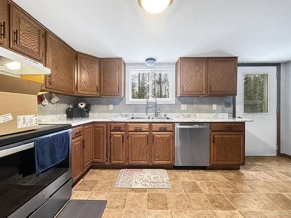 Enjoy the perfect blend of country living and convenience with this well-maintained 3-bedroom, 2-bath home on 5.73 acres in Wells Township, just 5 minutes from Escanaba. Set atop a ridge, the home offers a peaceful setting with nicely wooded acreage to the rear. This two-story home features an attached garage plus a detached garage currently used as an automotive workshop heated with LP wall furnace. The chicken coop can stay (chickens not included). There's plenty of room for gardening, and a graded, leveled site is already in place for a future pole building. Numerous updates have been completed since 2015, including a propane furnace (2020), kitchen counter and sink (2024), GE Profile range and refrigerator (2022), GE dishwasher (2024), water pump and pressure tank (2022), windows and siding (2023), garage metal roof (2025), drain field (2024), 8x8 shed for new chicken coup (2025) and updated flooring throughout. A wood heating system is also present but not currently connected, as the efficient propane furnace has proven cost-effective. The stove, refrigerator, and dishwasher are included; washer and dryer are negotiable. The water heater is high efficiency on demand system, this home is very energy efficient! A security system will remain with the home. Sellers are in the process of relocating to a family home and will be fully moved in soon. If you've been looking for a nicely updated home with acreage, privacy, and close proximity to town, this one is a must-see. Easy to show!
