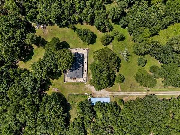 Head east on Texanna Rd for approx. 2-3 miles. Turn north on nearest county road toward 35.3473, -95.4206. Follow road about 2 miles. Look for gated entrance or drive on the left-you're there.