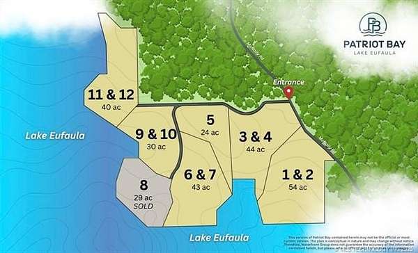 Rustic Waterfront Wildlife Retreat - 20.75 Acres MOL along the shores of Lake Eufaula, Lot 12 in Patriot Bay. Escape to the great outdoors with this one-of-a-kind property just off McNally Road in Eufaula. Spanning scenic acreage that offers dockable shoreline per seller, this retreat offers endless opportunities for adventure, relaxation, and creating lifelong memories. Imagine building your dream lake cabin getaway or setting up the perfect camping retreat surrounded by nature. The property boasts breathtaking water views and plenty of room to explore. Outdoor enthusiasts will love the versatility--bring your all-terrain vehicles, enjoy hunting, or simply unwind in the peaceful setting. Plus, Nine Marina and boat ramp are only minutes away. This rare find combines stunning lake views, rustic charm, outdoor recreation, and prime waterfront access. Don't miss your chance to make it your ultimate nature escape!