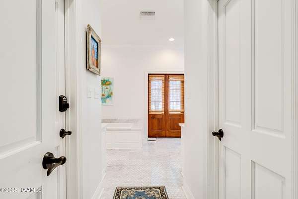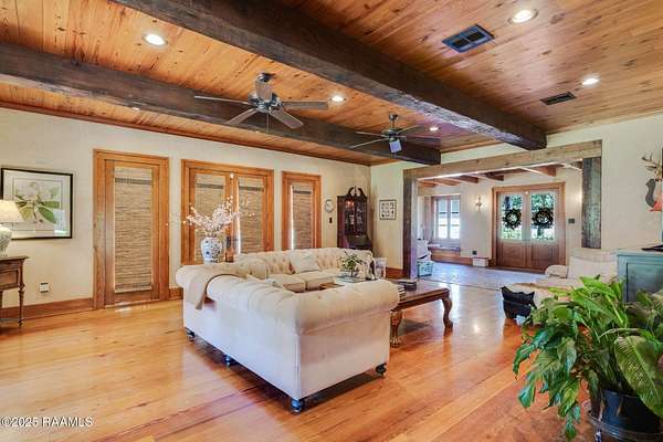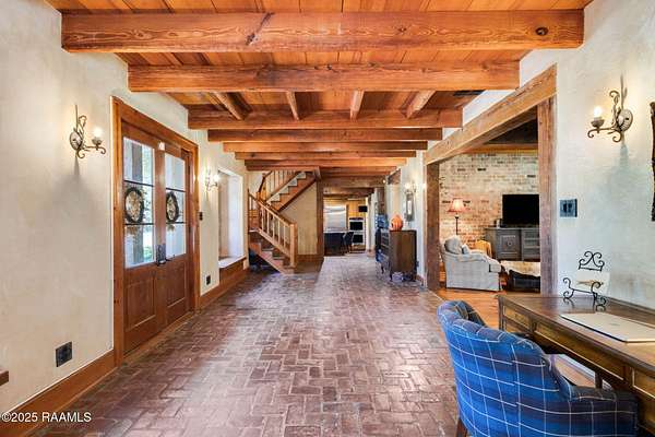 Located in the desirable Acadian Acres subdivision, this unique home offers nearly 8,000 sq. ft. of living space. Being A. Hayes Town inspired, this home reflects the timeless craftsmanship and refined Southern character of the famous A. Hayes Town name! Downstairs you'll find the large primary suite as well as 3 additional bedrooms and 2.5 bathrooms, as well as a spacious study. Upstairs awaits another bedroom and full bathroom, but just wait till you see the massive bonus room! Set on 12 acres, 4 of which are maintained, the property also includes wooded acreage with trails and a versatile barn for whatever use you have. Distinctive details such as reclaimed beams, brick flooring sourced from several Louisiana parishes, and granite, marble, and quartz surfaces add to the homes upscale and unique flare. This is a rare opportunity to own a home that balances space, privacy, and thoughtful design. Listed well below appraisal! Schedule your private showing today.