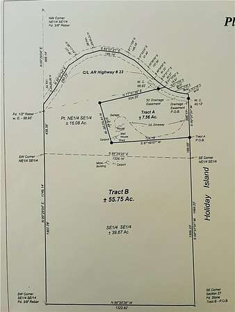 Location, Location, Location! Rare opportunity to own 55.75 acres of quality developable property with 1/3 mile frontage on Hwy 23. Amenities include grocery shopping, restaurants, banking, hardware, fire and police protection, gas, a convenience store and more are located next door. Only 5 miles to Eureka Springs and 4.5 miles to the Holiday Island Marina. Mixed topography with flat pasture, flat wooded areas and many outstanding rock outcroppings. Incredibly south-facing views including Lake Leatherwood. The perimiter is mostly fenced with roads throughout the property (some require 4WD) There is a 32 x 20 metal building and carport and electric is available on property. This is an awesome opportunity for development or to build your own country estate "in town."