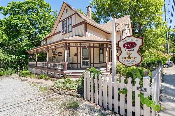 Welcome to the 5 Ojo Inn: The only 4-star historic Bed & Breakfast in Eureka Springs, AR! This exceptional, award-winning bed & breakfast offers unique accommodations with 9 rooms spread across 2 Victorian homes and 2 cottages, equipped with jetted tubs, fireplaces, complimentary drinks, cable TV, Wi-Fi, refrigerators, and Keurig coffee makers. The property is licensed to operate 10 rooms and is currently renting 9, providing immediate income with additional upside potential. The property offers a relaxing setting with a large wooded lot complete with gardens, trails, and wildlife, offering a peaceful retreat for guests. Located on the historic loop with a trolley stop (red route stop 97) right out front, providing easy access to all of Eureka Springs, or your guests can enjoy a short stroll to Downtown Eureka Springs for its vibrant shopping, dining, nightlife, and attractions. If you're looking to earn an income, own a thriving business, and enjoy your best life, the 5 Ojo Inn is the perfect opportunity for you!