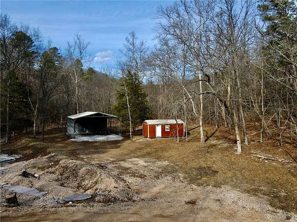 40+/- un-restricted and surveyed acres in the heart of the Ozarks, offering privacy, versatility, and unbeatable proximity to Beaver Lake. Located just 1/4 mile from pavement, this property provides easy access while maintaining a peaceful, secluded setting. A prime level build site with electric at the road captures amazing views, creating the perfect backdrop for your dream home or cabin retreat. The land showcases amazing topography with level valleys, sloped hillsides, and flat mature timber mountain tops. The property lends itself to excellent usability for trails, recreation, or additional building areas. A scenic creek winds through the property, enhancing both beauty and wildlife appeal. Deer and turkey are abundant, making this an outstanding recreational or hunting getaway. Improvements include a spacious 30x35 metal shed, along with an 11x24 storage building featuring a roll-up door for added convenience. 2 minutes from Beaver Lake and Big Clifty Boat Ramp, 18+/- minutes from Eureka Springs