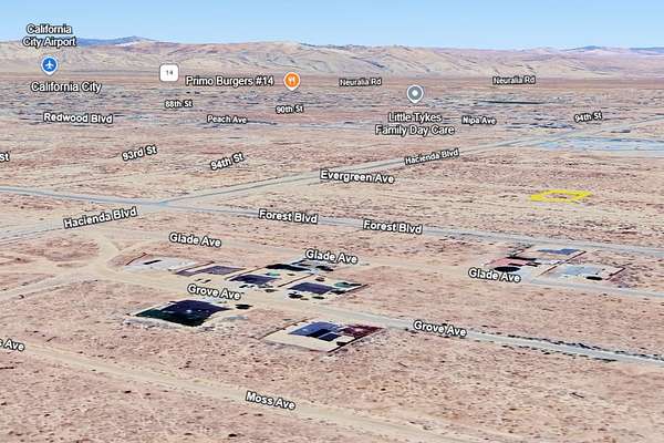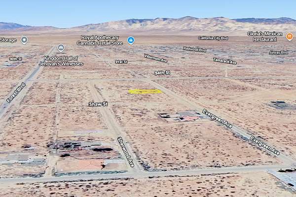 Located just minutes from California City Middle School and Redwood Blvd, the lot is also near essential amenities like Royal Apothecary, local restaurants, and Central Park. California City Airport and the High Desert Aerospace Park are a short drive away, providing additional regional access. This location is ideal for anyone looking to invest in a promising part of the city!