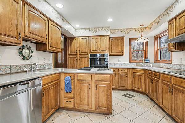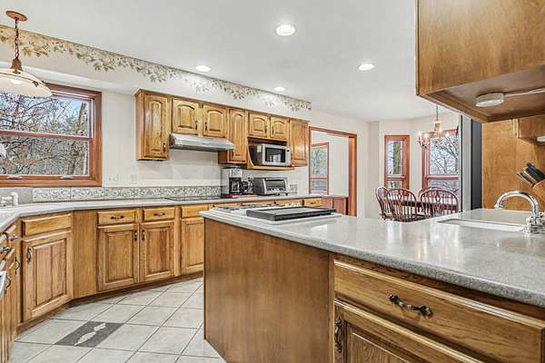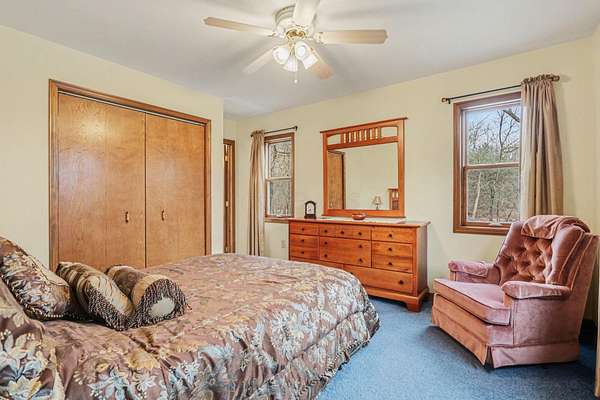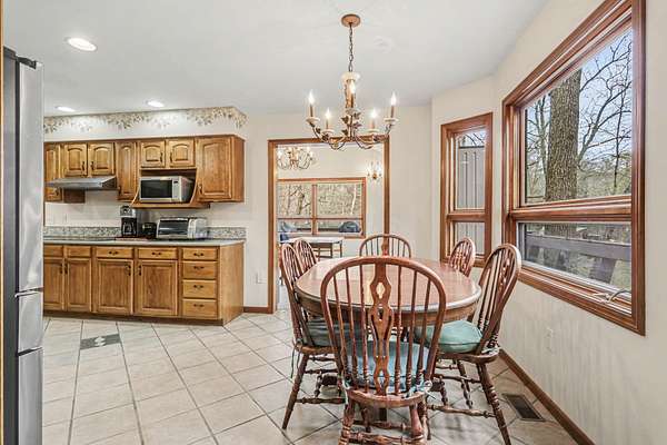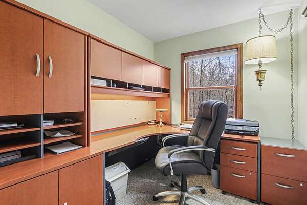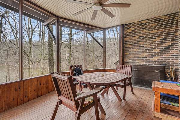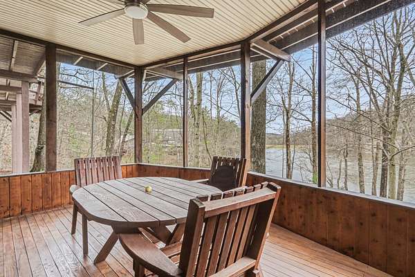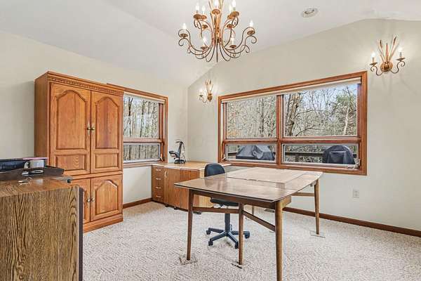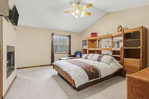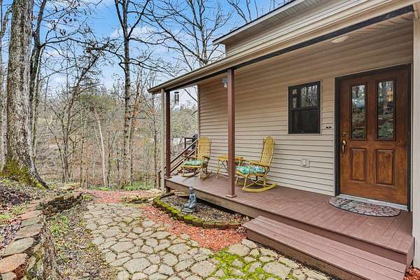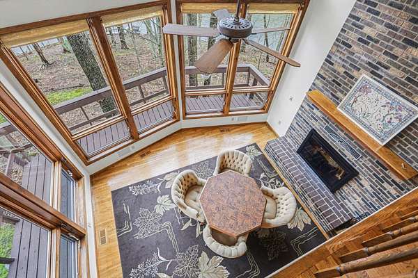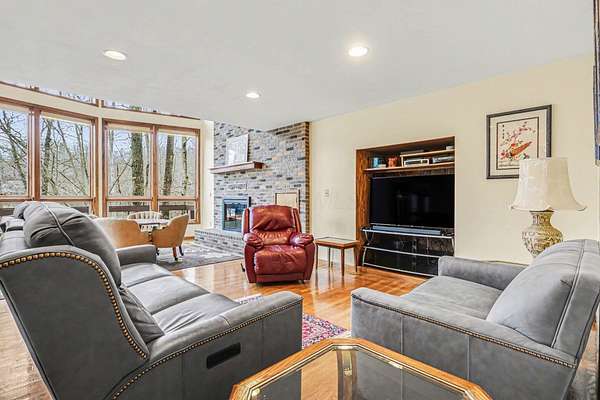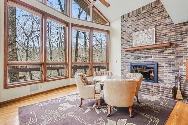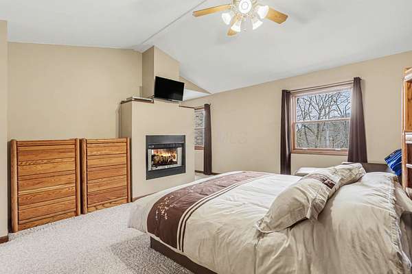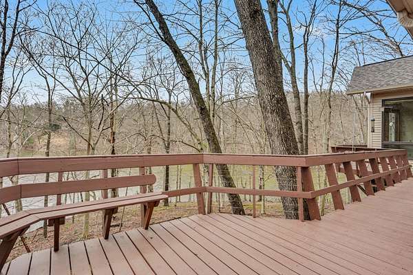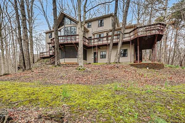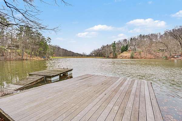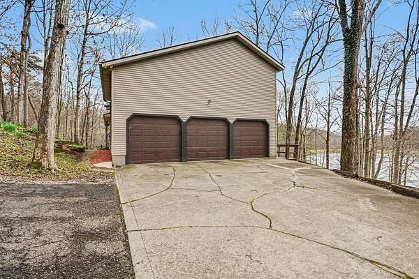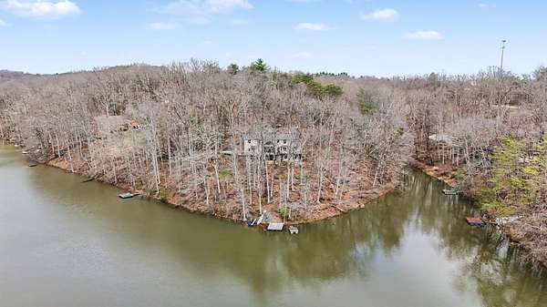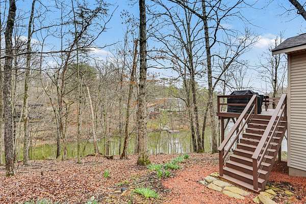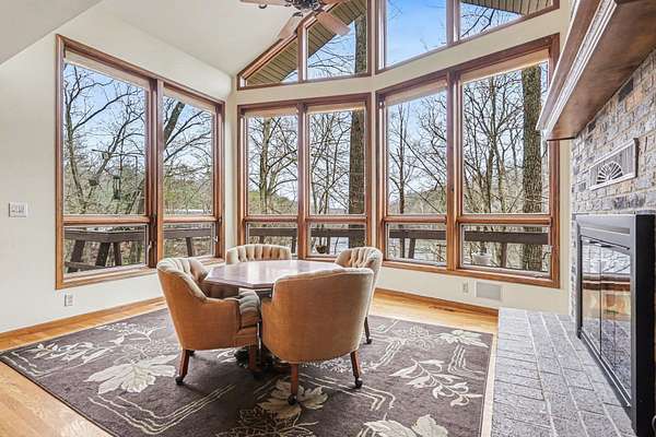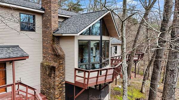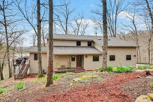 A rare opportunity to own a lakefront retreat in the sought-after Hideaway Hills Private Resort. Nestled on a private cul-de-sac and set on 1.96 wooded acres along Lake Eagleclaw, this 4-bedroom, 3.5-bath home offers the perfect blend of privacy, nature, and resort-style living. A beautifully landscaped entryway and dedicated home office create a warm and functional introduction to the home. The main level also features a first-floor laundry and a convenient half bath just off the attached 3-car garage. The heart of the home is the open great room, filled with natural light and framed by expansive windows showcasing peaceful lake and wooded views. The updated kitchen (2023) features stainless steel appliances, a double convection oven with air fry, and a Jenn-Air downdraft gas cooktop with a built-in griddle. Just off the kitchen, a flexible dining or craft room offers even more stunning views, Upstairs, the spacious primary suite is a true retreat, complete with a double sided cozy gas fireplace, sitting area, large walk-in closet, and additional storage. The en-suite bath includes a walk-in shower and whirlpool tub. Two additional bedrooms share a Jack-and-Jill bath, while a loft area provides the perfect reading nook. The full walkout basement extends your living space outdoors to a 3-season screened-in porch with a combo gas or woodburning fireplace, ideal for relaxing mornings or cozy evenings overlooking the lake. Additional updates include a new Lennox heat pump furnace and A/C (2019), 50-gallon electric water heater (2023), new roof shingles (2025), and a whole-house central vacuum system. Enjoy direct access to the quiet, non-motorized waters of Lake Eagleclaw with your own private dock, along with a scenic, walkable path to the water's edge. Residents enjoy 24/7 security and an abundance of amenities including a lodge, pool, pickleball and tennis courts, 9-hole golf course, fitness center and more. Don't miss out!