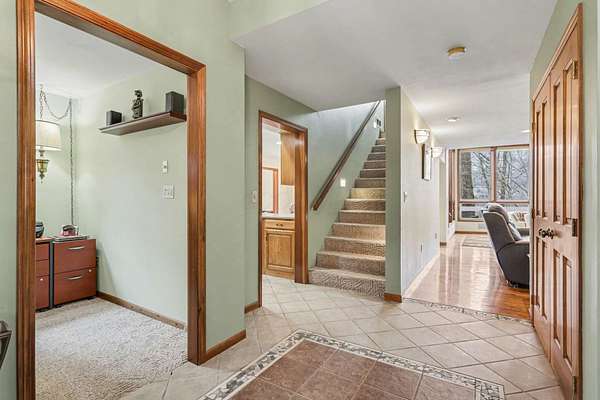 - Carpet, Ceramic/Porcelain, Wood