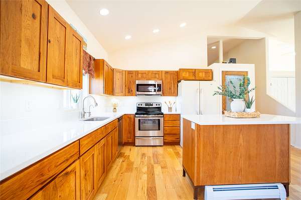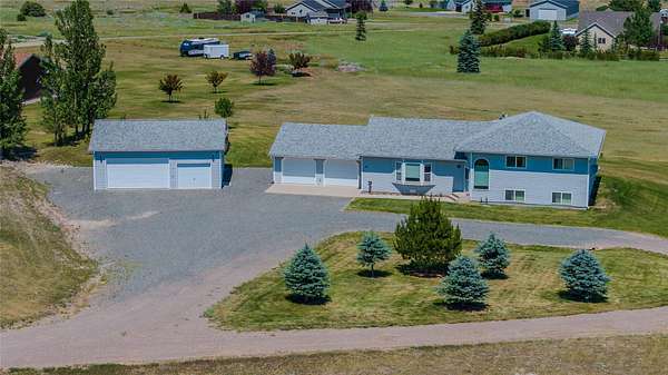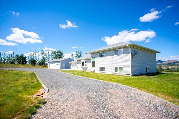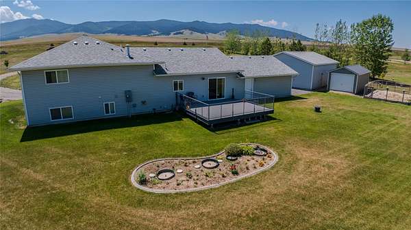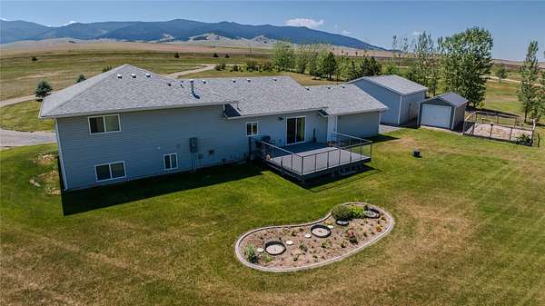 Enjoy sweeping mountain views from this beautifully updated tri-level home just outside East Helena. Situated on nearly 4 acres, this 5-bedroom, 3-bath home offers approximately 2,750 sq ft of comfortable living space. The remodeled kitchen features hickory cabinetry, white countertops, soft-close drawers, and touch-sensor lighting, opening to warm living areas with hickory hardwood floors. Two spacious primary suites provide flexible living options, and a cozy pellet stove adds charm and efficiency. Outdoor amenities include an attached insulated garage, a 24' x 32' finished shop, a 12' x 26' garden shed, and a fenced 20' x 20' irrigated garden area with equipment included. A newer 50-year roof adds long-term value and peace of mind. Experience privacy, space, and Montana living just minutes from town.