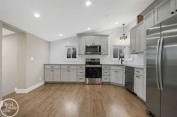 Escape to your own private retreat with 6+acres of serene, wooded beauty--perfect for outdoor living, recreation, and year-round adventure. This beautifully updated split-level home blends farmhouse charm with modern finishes, offering comfort, style, and space for every need. Step into a bright, welcoming foyer with refinished hardwood floors flowing through most of the main level. The brand-new kitchen features soft-close shaker cabinets with 42" uppers and crown molding, granite countertops, stainless steel appliances, and recessed lighting. A flexible room off the kitchen can serve as a formal dining area, home office, or playroom. Convenient first-floor laundry and a fully updated half bath add to the functionality. The spacious primary bedroom offers a large walk-in closet, recessed lighting, ceiling fan, and a stunning new ensuite bath with a dual-sink granite vanity, relaxing clawfoot tub, and tiled shower with surround. The second level features two generous bedrooms, a loft with new carpet, and a newly updated full bath with a dual-sink vanity, granite counter, and subway-tile shower with stone floor. Enjoy the great room's abundant natural light, bay window, and open layout, or step outside to your new cement patio with outdoor fireplace--perfect for summer evenings under the stars. Extra Buildings for Work &Play! A large barn provides ample workshop space plus a finished bonus room for a home office, hobby space, or guest accommodations. Additional outbuildings are ready to store your outdoor gear, vehicles, or recreational toys. Move-in ready and set for your next adventure--welcome home to the best of country living. Other brand-new updates include: roof, roof sheathing, insulation, furnace and A/C, water heater, septic tank and field, updated electrical, updated plumbing, most windows replaced, vinyl siding, front and side entry stairs and decks. New well and large circular drive with new limestone.