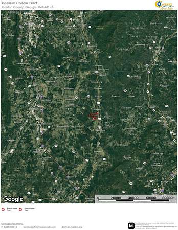 The Possum Hollow Tract consists of +/- 584 acres of land for sale in the countryside of Fairmount, Georgia. Just a brief 10-minute drive from downtown Fairmount and a convenient 30-minute commute from Cartersville, the tract offers a blend of rural tranquility and accessibility.