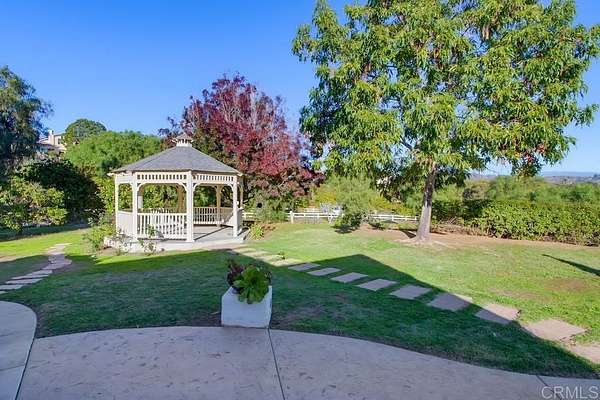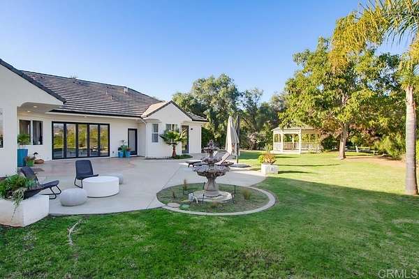 Seller will entertain offers between $1,550,000 - $1,650,000. VA assumable loan at 2.875% interest rate. Nestled at the end of a private, tree-lined road and surrounded by rolling hills, this 2.35-acre estate offers a sense of peace that's increasingly rare. Here, panoramic views, elevated finishes, and your own small private vineyard create an inviting backdrop for everyday living. This turnkey property has been thoughtfully refreshed with new interior and exterior paint, 5" baseboards, new doors, upgraded flooring, modern light fixtures, a gas fireplace, premium bathroom finishes, and a stunning La Cantina door in the foyer/living room that frames mountain views to the east. The spacious layout includes 4 bedrooms (1 is an optional bedroom/office), and a generous primary suite featuring an ensuite bath and walk-in closets. Outdoors, the property is just as captivating, with a charming gazebo, working fountain, pergola-covered patio, producing fruit trees (avocado, peach, lemon, loquat, apple, pomegranate, fig & grapefruit) and multiple seating areas spread across two adjacent lots. Both lots are flat/genltly sloped and usable - a rare find in this area! A 3-car garage with epoxied flooring and gated RV pad offer ample room for vehicles, toys, and gear. All of this is offered with quick access to Hwys 76 and 15, near the Golf Club of California and Fallbrook wineries including the upscale Monserate Winery, AND less than 30 minutes to Oceanside beaches and Camp Pendleton.