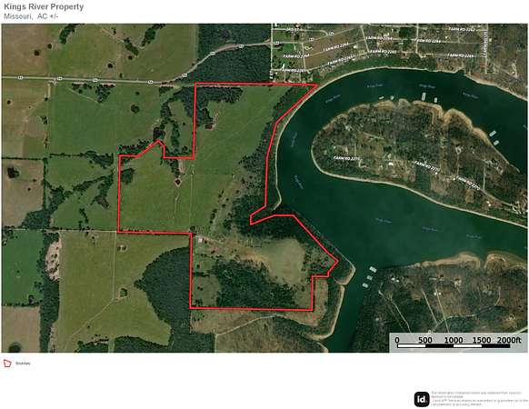 Nestled in the Ozarks is a rare opportunity to own 194 acres of mostly cleared, fenced and cross fenced pasture. And, even more rare... is when your 194 acres comes with a full mile of lake frontage. For a discerning buyer, or savvy developer, this may be the once in a lifetime opportunity you have been waiting for. Located on the Kings River arm of Table rock Lake, there are plenty of breath-taking lake views that one would come to expect of such a property. The eastern banks of the mile long shoreline provide the perfect angle for watching the evening sunset over the lake, fishing and pleasure boats passing by, and the local eagles soaring high above while your cattle graze in the fields behind. Included with this property is a US Army Corp of Engineers inspection report approving the build or tow in of a 12-slip boat dock located mid-shoreline in a cove. And, when you need to fuel your bass or pleasure boat, it's only a few minutes boat ride up to the Kings River Marina or the Kings River public use area. Power lines currently cross the property to the working water well and is readily available when you pick that perfect spot for your custom home or homes. The deer and turkey sign along the tree and fence lines indicate an abundance of wildlife and the excellent fishing for bass, crappie, walleye, and catfish makes this is a true sportsman paradise. And with 194 acres of playground, plenty of opportunity abounds to ride horses, UTV's, or hike the property which completes the full outdoor experience for the new owner. Centrally located just north of Golden Missouri, your drive to Eureka Springs Arkansas is less than 30 minutes and it is just under an hour to all the shopping, shows and restaurants Branson can provide. The Kings River 194 truly is what Legacies are made of; one or more homes for your families to enjoy for generations to come, or a development with your name on it that you can be proud of. Come take a tour of this exceptional property today and you will understand why this is not just land... this is a lifestyle.
