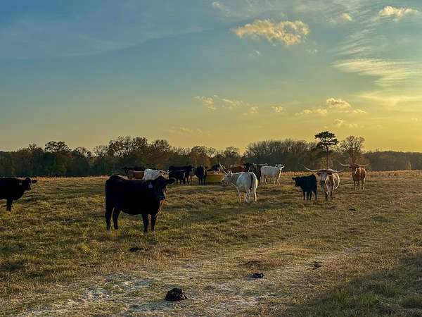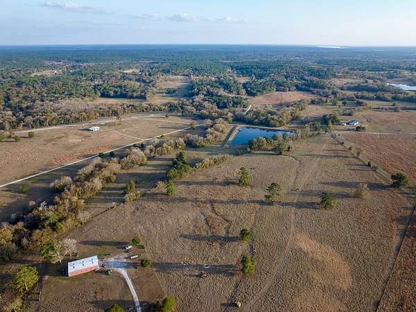 Improvements include a barndominium with a shop, guest quarters, barns, custom cattle facilities, water wells, septic systems, fiber internet, and excellent roads. Fully fenced, ag-exempt, and unrestricted, the ranch supports 80+ head of cattle and offers income potential from livestock, hay, and hunting. A secluded yet highly accessible family compound, corporate retreat, or elite hunting lodge just minutes from Huntsville and major amenities.