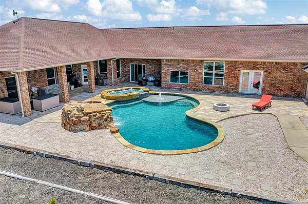 The 1638 SF guest house includes 2 bedrooms, a full bath, kitchen, and living area--plus an attached warehouse and large office--perfect for rental income or business use. Projected rent: $1,500-$2,000 per month. Property is fully fenced, with an electric gated entry, large barn, pond, and plenty of open space for livestock or gardening.