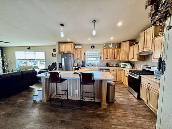 Set on 168 expansive acres in the heart of Wyoming, this exceptional farm and ranch property is located near Farson, Wyoming, approximately 42 miles north of Rock Springs. A rare opportunity to own a highly productive, well-improved operation offering irrigation, livestock facilities, multiple residences, and world-class recreation. The property features 100 irrigated acres under a Valley Pivot, with new alfalfa seeding in 2025 designed for high-yield production. Whether your vision includes hay production, cattle, horses, or a combination of all three, this ranch is built to perform. Outstanding equestrian and livestock amenities include an indoor riding arena, outdoor arena, and round pen, along with a large open-end barn offering over 6,700 square feet of space. A substantial loafing shed, drill-stem pipe corrals, and an automatic waterer provide an efficient, low-maintenance setup ideal for both cattle and horse operations. The ranch is improved with two residences. The primary home, constructed in 2022, offers over 1,900 square feet per level with a walkout basement. This modern residence features a beautiful open floor plan, a spacious kitchen with abundant cabinetry and counter space, and a well-appointed butler's pantry. The main level includes three bedrooms and two bathrooms, highlighted by a generous primary suite. The partially finished basement adds additional living space as well as a half bath plumbed and ready to be finished to your liking. The second home is a charming 3-bedroom, 1-bath cabin, providing excellent options for guest accommodations, rental income, or housing for extended family or ranch staff. Adding to its appeal, this property has historically received two landowner tags for Area 100 Elk and Area 92 Antelope, some of the most sought-after hunting areas in Wyoming. Abundant wildlife and wide-open views allow you to enjoy the natural beauty of the region year-round. This is a premium Wyoming ranch property that suits a wide range of buyers, from serious agricultural operators to recreational ranch owners seeking space, privacy, and unmatched outdoor opportunities. Call Wind River Realty at 307-856-3999 today to schedule your private tour of this exceptional ranch!