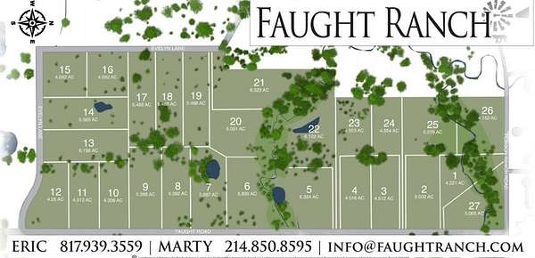The community consists of 27 exclusive ranch home sites, all currently AG exempt. Lots sizes range from 4 to 8 acres, more than enough acreage to spread out and build your luxury estate. Each lot boasts varied terrain that provides breathtaking views of the surrounding landscape: wake up to serene sunrises and enjoy unbelievable sunsets and starry nights! Conveniently located a short drive to restaurants and retail, with several large projects under development, the community offers easy access to I35 and 114 taking you anywhere you want to go in the metroplex.