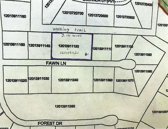 From Hancock exit go W. to North Lake Ave , Then South to 6th Ave which turns into Forest Dr. Take Forest Dr to Fawn Lane , left onto Fawn Lane. Midway down you'll see Red flags marking lot on left.