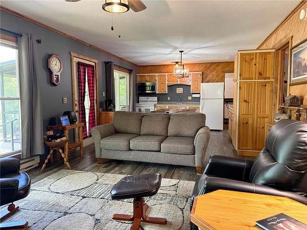 Take the long and winding road! Soak in the soothing rippling waters, all the nature, privacy and quiet you desire at this one of a kind property! Truly an amazing property-feels like "On Golden Pond" setting...you can have it all here! 200' of lakeshore frontage and almost 6 wooded & secluded acres, literally tucked in at the end of a dead-end road, on the pristine quiet waters of Townline Lake. This year-round home is in mint condition, with a lakeside porch and deck, cozy wood stove, accompanied by a 25x18 insulated garage, huge 20x12 "hunters shack" to use as shop or hobby structure to fit your needs, multiple sheds & carport. For winter fun, the local snowmobile trail is a quick ride to the west side of Townline lake. Compliant septic. Washer/dryer are in main floor bathroom. For more acreage and lakeshore frontage, can be sold with adjoining property (see MLS #6807151).