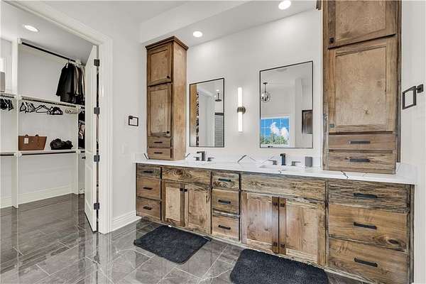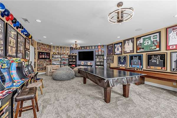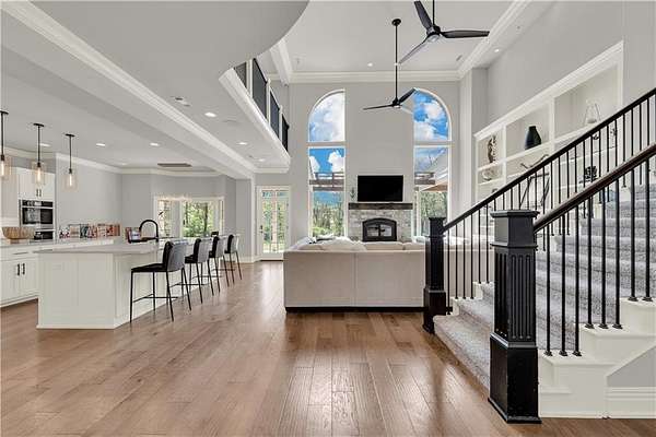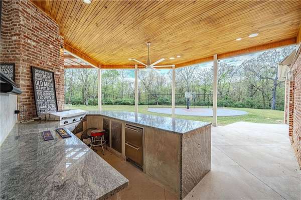This Entertainer's dreams is back on the market! Gorgeous recently remodeled 3 bed, 5 bath, 3 car garage on 2.04 private acres. Valuted entry, open concept. Eat-in Kitchen w/custom cabinets, 2 islands, prep sink & farmhouse sink, subzero fridge, pantry, 5 burner cooktop w/hood & double wall ovens. Great room w/20 foot ceiling, built ins, fireplace flanked by floor to ceiling windows overlooking the private backyard pergola, & Michael Jordan basketball court. Covered outdoor kitchen w/island, triple cooler fridge, wine chiller, LeGriddle, & Big Ass Fan. Primary suite includes nurses/office, & Bath w/soaker tub, rainfall shower, & walk in closet with built in shelves, drawers, and 3 tiers of hanging space. Upstairs find a game room that could be a second living area or home theater and HIDDEN SPEAKEASY! Two upper bedrooms have private baths and walk in closets. Updated wood floors, crown moldings throughout. Laundry chute, 2 half baths, bidet, whole home vacuum, 14 camera surveillance, and permanent mulch.
