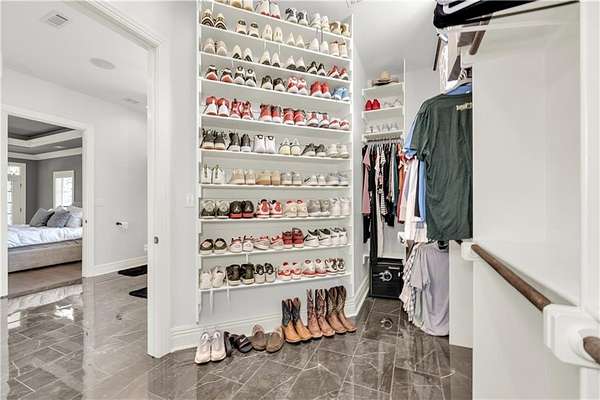 - Attic Storage, Built-In Ironing Board, Built-Ins, Cathedral Ceiling, Ceiling Fans, Central Vacuum, Eat-in-Kitchen, Granite Counters, Ice Maker Connection, Pantry, Programmable Thermostat, Quartz Counters, Smoke Detector, Walk-In Closets, Wet Bar, Wired For Sound