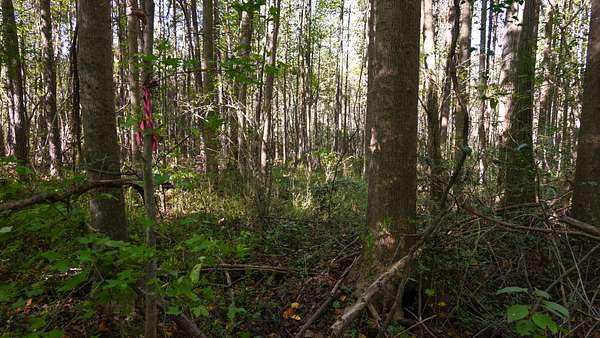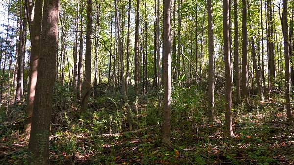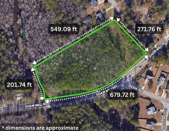The property features paved frontage along Shaw Mill Road, a city-maintained route with extensive road access across the parcel. The fully wooded terrain slopes gently from east to west, with the eastern and south-central portions positioned higher and drier--outside mapped floodway and wetland zones--making these areas most suitable for residential development per city guidance. The western portion contains wetlands and Cross Creek corridor (not optimal for construction) but providing lasting natural separation from neighboring properties.