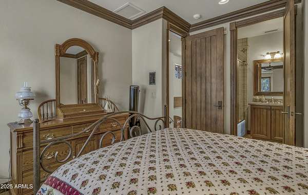 A mountain masterpiece majestically perched high above the 16th hole of the Meadow Golf course at Forest Highlands with panoramic views of Ponderosa Pines and views of the San Francisco Peaks. Stunning craftsmanship with top of the line finishes throughout. Spectacular entertaining spaces on both levels with multiple family rooms, multiple decks and seating areas, firepit, full bar plus an additional wet bar downstairs and multiple built-in BBQ grills. In addition to the 5 bedrooms, there is a large office with views, a fitness room and another large bedroom/office combo room with versatility. The chef's kitchen is centrally located with direct access to the great room and large covered deck. Top it off with central A/C and a 4-car garage!