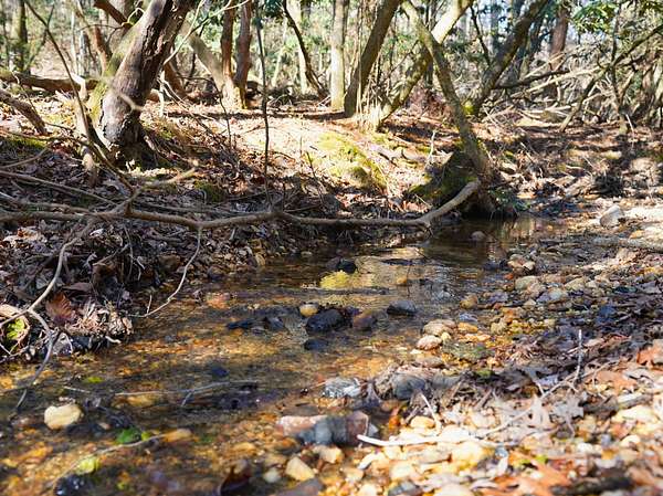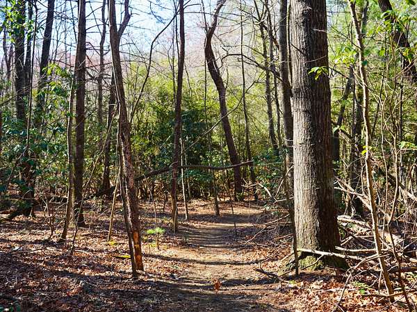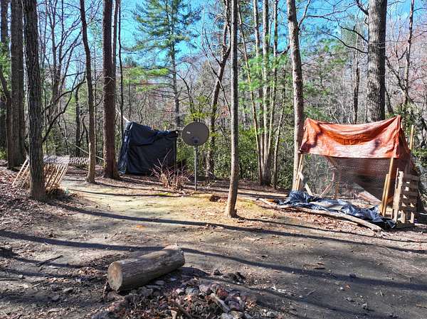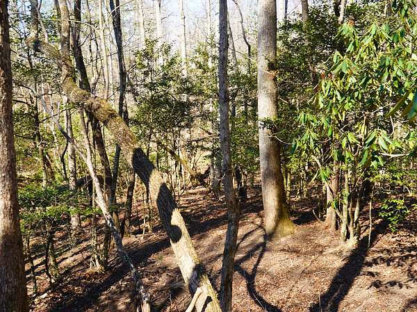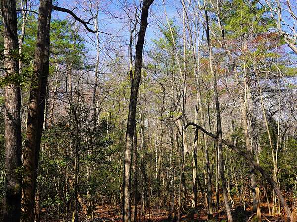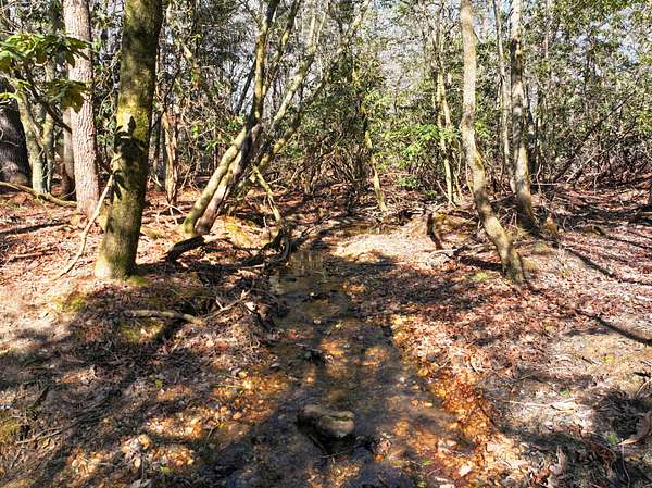 The land is predominantly wooded, showcasing a diverse mix of mature oak, towering poplar, pine, and other native hardwoods that provide both aesthetic appeal and privacy. A cleared walking path leads you through the property to the southwest corner, where a peaceful, meandering creek flows through a lush corridor of rhododendron. This secluded creekside setting creates a natural escape, ideal for relaxing in a hammock, gathering around a fire, or enjoying the simple quiet of nature.