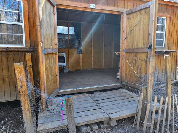 A small shed and chicken coop convey with the sale, offering immediate utility for storage or hobby farming. The layout and mild terrain provide multiple potential build sites, giving buyers flexibility, whether planning a full-time residence or a seasonal getaway.