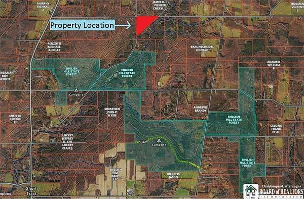 25 deeded acres located in the Town of Granger, NY (Allegany County), just feet from the boundary of English Hill State Forest-offering direct access to approximately 1,395 acres of New York State public land for hunting, hiking, and year-round outdoor recreation. This unique triangular-shaped parcel features extensive road frontage on all sides, providing multiple access points and flexibility for future use. Electric and cable internet are available along Gelser Road, nearest a prime building location where a mostly open area is already established-ideal for a cabin, home, or recreational basecamp. The setting is exceptionally quiet and scenic, with three small streams running through the property-enhancing both the natural beauty and wildlife habitat. A hunting shack is already in place on the property and conveys with the sale-providing an immediate base for recreation while you plan future improvements. The land offers outstanding diversity, featuring a healthy mix of hardwoods and softwoods throughout. A harvestable stand of white ash is present, along with a smaller stand of mature jumbo red oaks. Additional species include white oak, hard and soft maple, cherry, honey locust, and white pine-making this property attractive for both timber value and long-term investment potential. All oil, gas, mineral, and timber rights will convey with the sale. Excellent hunting area supported by strong habitat diversity, natural water sources, and direct access to state land. This property offers a rare combination of seclusion and accessibility in a highly desirable location. Conveniently located just 1 hour 15 minutes from Rochester and 1 hour 30 minutes from Buffalo-making this the perfect countryside retreat in short order. Whether you're looking to build, invest, or enjoy a private getaway, this property checks all the boxes.