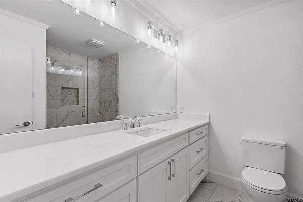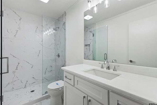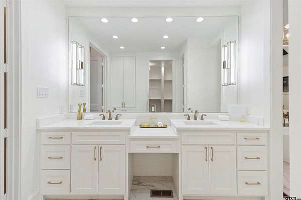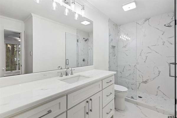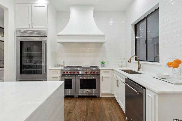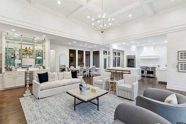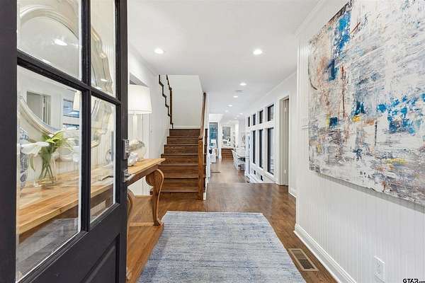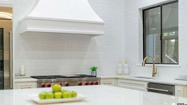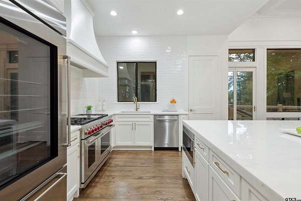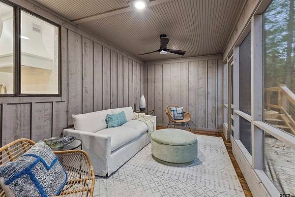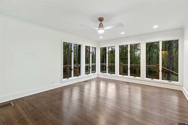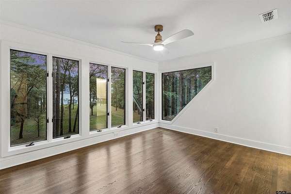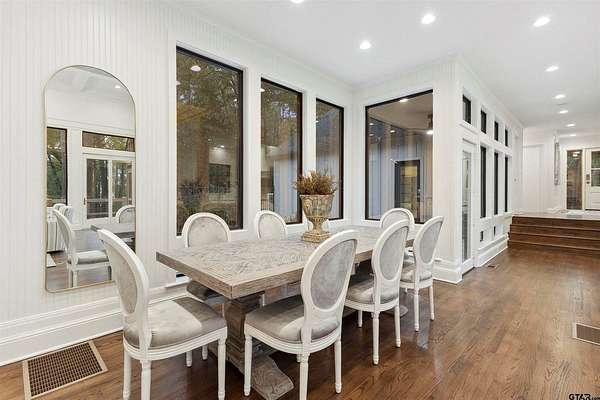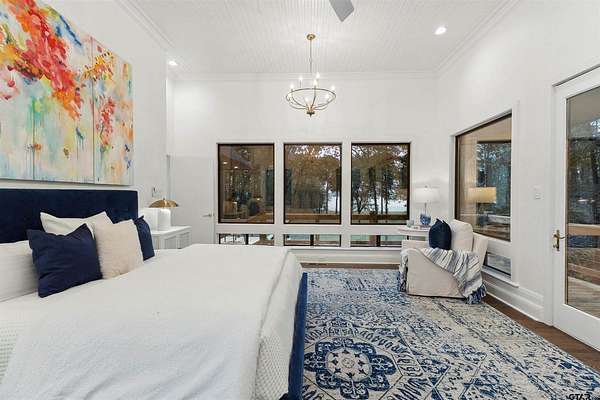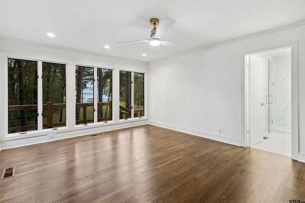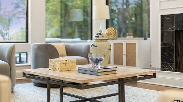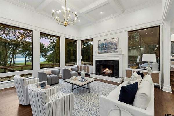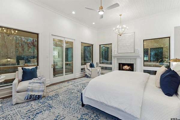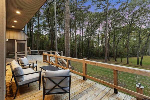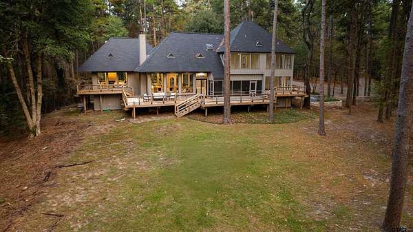 Spanning almost 4 acres, this gated property offers expansive water vistas conveniently located minutes from Tyler's growing southern corridor and only 90 miles east of Dallas. Featuring timeless design this estate has been transformed with an infusion of bespoke finishes and quiet luxury connecting it to the natural light and views beyond. Surrounded by a multitude of hardwoods and pines, the extraordinary property has been thoughtfully enhanced to encourage the new owner to entertain and create endless memories in this legacy estate. With the primary bedroom suite downstairs, an additional bedroom downstairs and 3 more bedrooms with 2 full bathrooms upstairs: there is plenty of space to host. Large living room open to the gourmet kitchen has walls of windows with clear views to the water. Make this your next home and start making memories to last a lifetime!