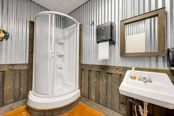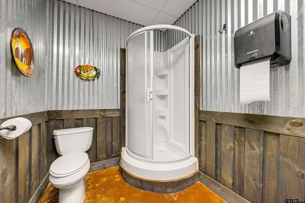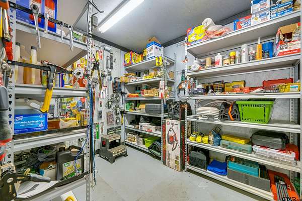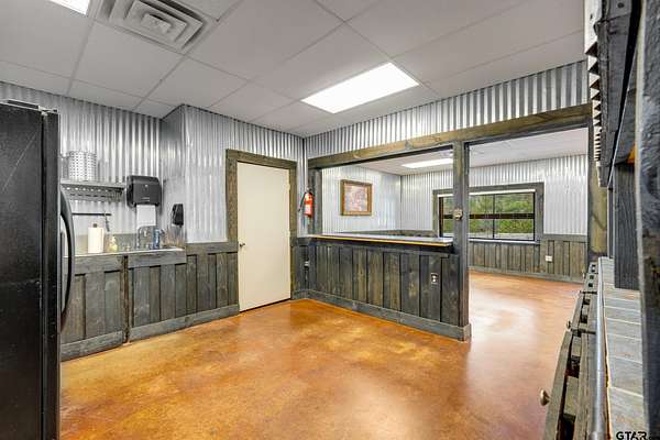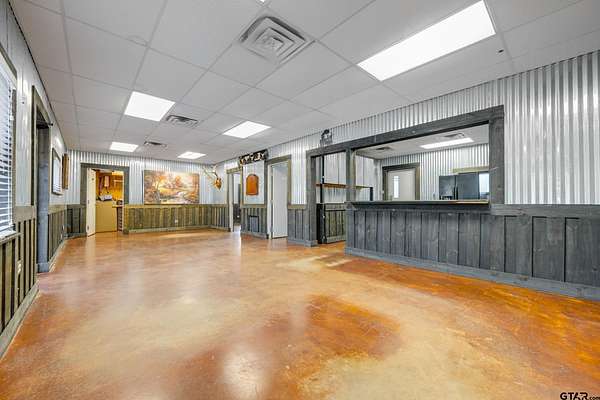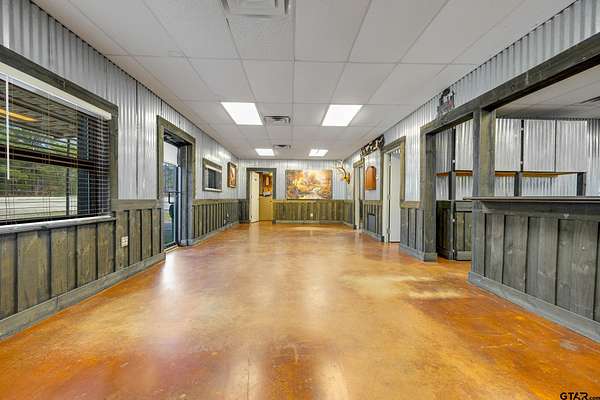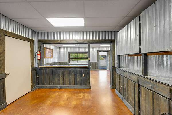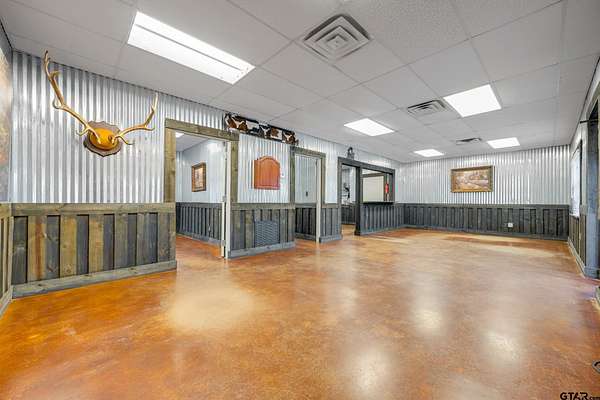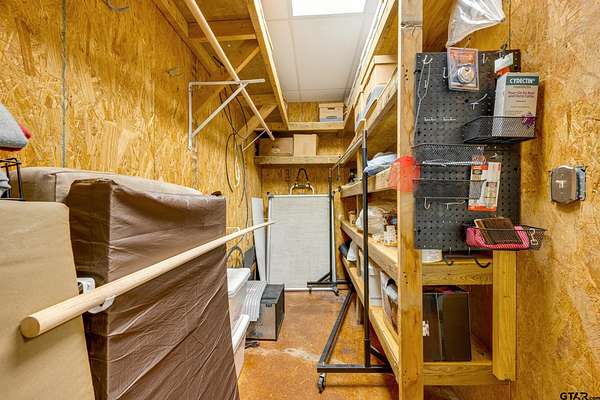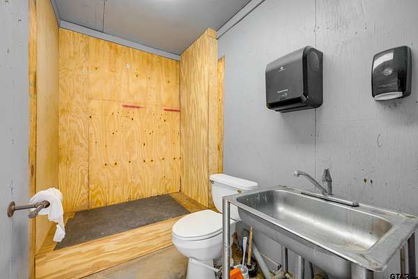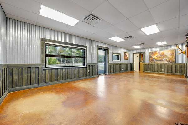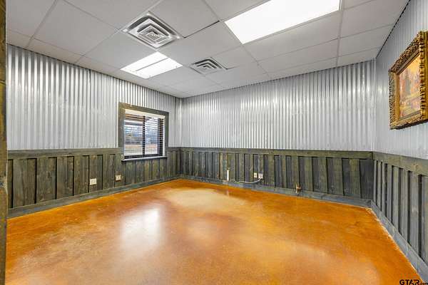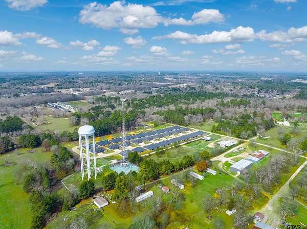 Exceptional commercial opportunity in rapidly expanding south Tyler! Situated on approximately 4.587 acres, this versatile property is ideal for contractors, service-based businesses, or operations requiring office, warehouse, and equipment storage in one convenient location. The 960+- sq. ft. heated and cooled office building offers a professional yet functional layout featuring a spacious lobby/reception area, private office, bathroom, and kitchen/break area. Stained concrete floors throughout provide a modern look with easy maintenance and long-term durability. A covered rear carport adds convenience for staff or company vehicles. Supporting the operation is a 3,200+- sq. ft. shop with three 14-foot overhead doors, allowing easy access for large trucks, trailers, or equipment. The shop also includes a secured storage area and bathroom, offering added functionality and security. Two expansive 25' x 80' sheds provide substantial covered space for equipment, fleet vehicles, or materials. With ample room for expansion, outdoor storage, and maneuverability, this property delivers flexibility and efficiency in a high-demand growth corridor. A rare opportunity to secure acreage, office, shop, and covered storage all in one strategic location, just south of Tyler.