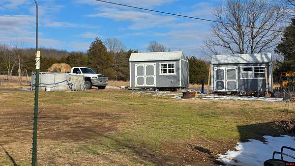 Est $1,616/mo3 bedroom 2 bath home with large kitchen and Fireplace in living room on 20 AC M/L fenced and cross fenced with barn and workshop. Detached garage/workshop, spring fed pond and storm shelter. Land lays beautifully and pasture is improved.2 tiny homes, converted school bus for living & your own Mator pickup truck non running! Immaculate. $325,000.