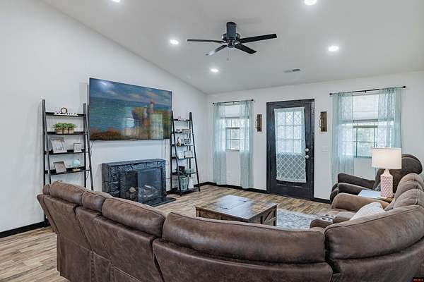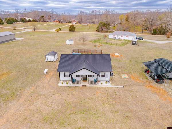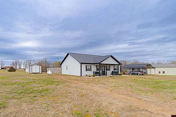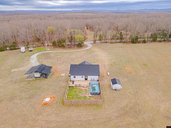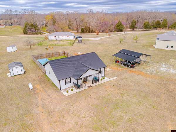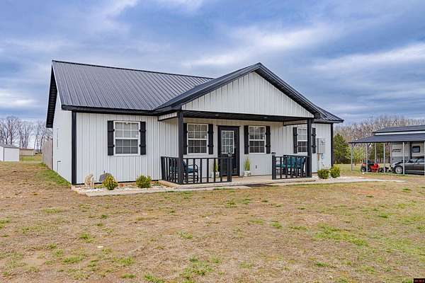 Built in 2024, this clean and inviting 3-bedroom, 2-bath home offers 1,280 sq ft of comfortable living space on 2.18 acres m/l. Located just minutes from the famous White River public launch area and a public launch on Bull Shoals Lake, this property is ideal for anyone who loves fishing, boating, and the outdoors. The home features durable metal siding and a bright, open interior with a cozy fireplace in the living room. The kitchen includes beautiful butcher block countertops and plenty of room for cooking and gathering. The primary bedroom offers a spacious walk-in closet for added, enjoy a nice front patio and a backyard deck perfect for relaxing or entertaining. The property also includes a fenced-in privacy yard, an above-ground pool, and a three-car carport with plenty of space for vehicles, boats, or storage. The home is serviced by city water and septic. A great opportunity to own a newer home with acreage just minutes from some of the best fishing and lake access in the area!