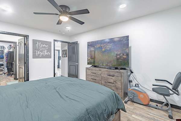 - Ceiling Fan(s), Open Floor Plan, Split Bedroom Plan, Stained Concrete Floors, Walk in Closet