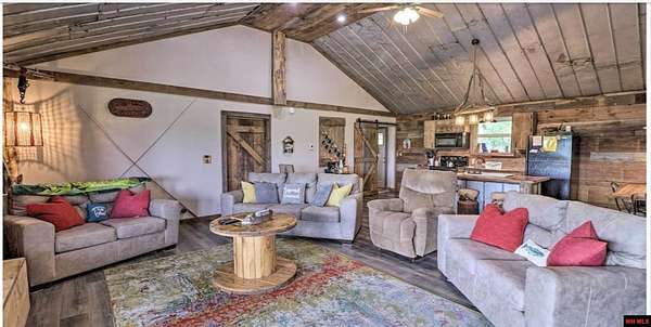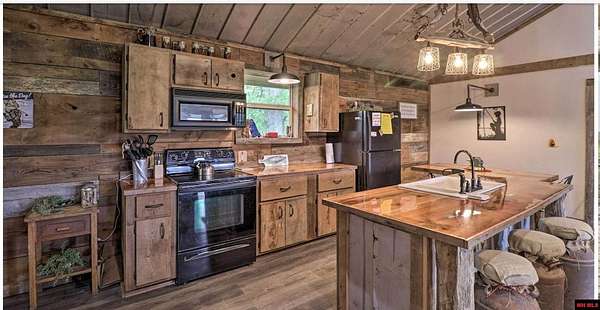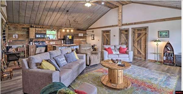 Featuring three generously sized bedrooms and two beautifully designed bathrooms, this retreat is perfect for relaxation. Step outside onto the expansive, covered deck, where you can soak in the stunning views of the idyllic landscape and the soothing sounds of Crooked Creek flowing nearby. The back porch presents a picturesque panorama of a vast valley, where you may spot deer gracefully moving through the meadow below. For those who enjoy fishing, the cabin offers easy access to the famous White River, while nature enthusiasts can explore the nearby Ozark Mountains, which are home to a variety of scenic hiking trails. Conveniently located just a short distance from Cotter and the White River, this cabin allows you to experience the charm of local shops and the welcoming atmosphere of a small town. Inside, you will discover a delightful fusion of rustic charm and modern amenities, ensuring that you have everything you need for a truly relaxing getaway.1.60 AC M/L $285,000