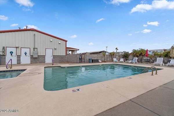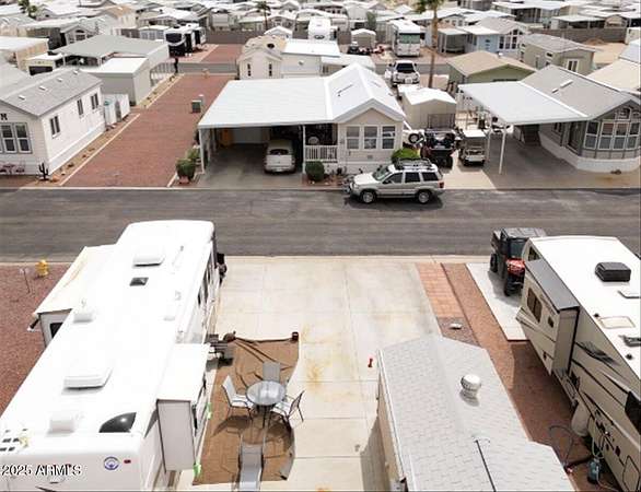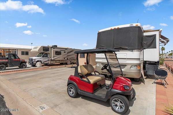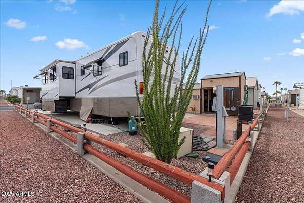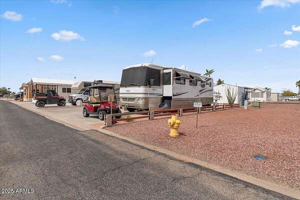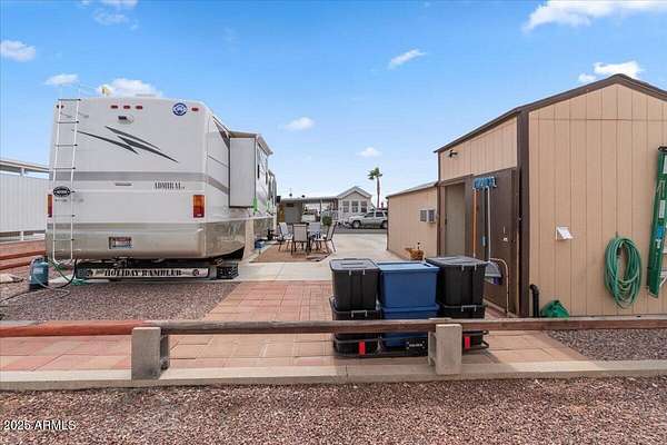 Welcome to your perfect getaway in the heart of Florence, AZ! This 2201 sq ft RV lot, located in the highly sought-after Tierra Del Sol RV Resort, offers an exceptional opportunity to own your land with no land lease fees. The lot is ideally situated adjacent to a common area, offering additional privacy and open space for your enjoyment. Lot includes an oversized storage shed with washer, dryer, & refrigerator. Spend your days lounging by the community pool, soaking in the sunshine, or participating in one of the many daily activities at the clubhouse, where there's always something exciting to do. With all the benefits of ownership, plus the added convenience of a friendly, active 55+ community, this is more than just a property-it's a lifestyle. (Rv/golf cart not included)