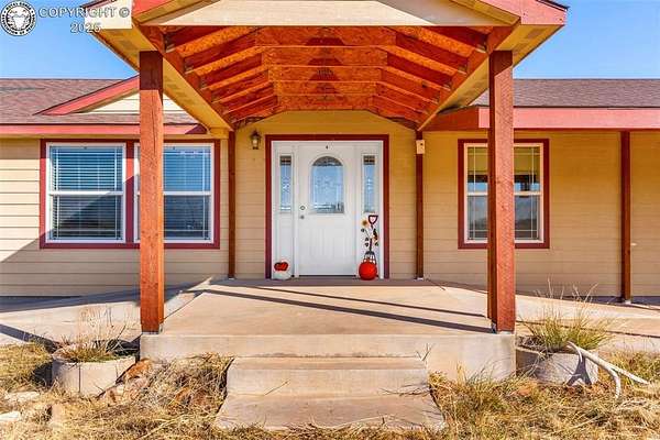This is a great property to set up for homesteading, property has its own well that pumps 15gpm. Situated on 40 acres with cross fencing for livestock. The country kitchen is large center island and upgraded cabinetry along with stainless steel appliances and farm sink and don't miss out on that corner storage pantry! Master bedroom suite with outside access and a sidewalk to the covered patio which is wired for a hot tub. The master bedroom large walk in closet, jack and jill sinks and step in shower. Vaulted ceilings with a large hall area for additional storage with built in buffet cabinet add to the charm of this home. There are 2 additional areas that you could use for office space, home school room, family room/den, or storage/play areas. There is plenty of outdoor space to run and play on 40 acres, totally fenced. The 40x40 quonset building with concrete and 11x22 doors can be an additional space for animals or make it a shop to work on cars or woodworking projects. Could also be used to park automobiles. There is an additional seperate 1200 gallon water cistern if needed as a back up water source. A seasonal creek provides water for the home with a permitted domestic well. Large outdoor groomed horse arena along with horse barn area including 10 stalls and 3 large turn out pastures. Lots of beautiful views and allot of privacy with this home. New metal roof added January 2025.