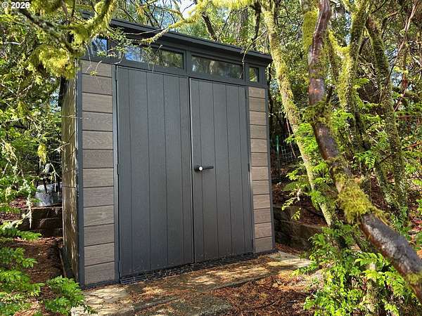 Welcome to your ideal Oregon Coast retreat! This charming property offers a perfect blend of outdoor relaxation and comfort, making it a great home base for your coastal adventures. The property features two outdoor entertainment areas: In the backyard, enjoy a patio adorned with custom retaining walls and slate pavers, while the side yard boasts a custom fire pit surrounded by concrete pavers - perfect for cozy evenings or gatherings. A drip irrigation system with timers will keep your potted plants thriving during the summer months, ensuring your outdoor spaces stay lush and vibrant. A 120-gallon propane tank is on the premises to service a trailer and BBQ's. Storage is abundant with a new 7x7 shed and a remodeled 7x8 bunkhouse/workshop that includes electricity, perfect for a workshop, project space, or whatever you can imagine. The outdoor living area is fenced to keep your pets safe and secure. The gated community offers a range of amenities for a true sense of community living including a clubhouse, pool, laundry facilities, community garden area, and an exercise room.