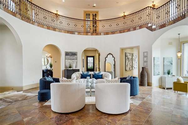INSPIRED BY THE GREAT VILLAS OF TUSCANY*APPRAISED AT $5.3 MILLION APRIL 2024*STUNNING ESTATE,LOCATED IN EXCLUSIVE GUARDED & GATED LAKE COMMUNITY OF CHATEAU DU LAC*NESTLED ON A SPRAWLING 2 ACRE LOT,CANVASSED BY MAJESTIC TREES*PRIVACY ABOUNDS*GRAND ENTRY W-ROTUNDA CEILING & HAND-PAINTED DOME*BUILT SPARING NO EXPENSE & PERFECT FOR ENTERTAINING WITH A GREAT FLOOR PLAN THAT FLOWS SEAMLESSLY*UNMATCHED ANYWHERE!*RELAX IN YOUR OWN BACKYARD PARADISE*CREATED FOR ENTERTAINING*OPENS TO SEVERAL PATIOS INCLUDING A LARGE PATIO W-OUTSIDE LIVING AREA, FIREPLACE & GRILL*BEAUTIFUL VIEWS OF EXPANSIVE POOL, BRIDGES*VINEYARD, KOI POND & FORT*NIGHT LIGHTING*STUDY W-FIREPLACE & READING AREA*WINE TASTING ROOM*SITTING AREA W-WINE STORAGE*UPPER LEVEL OFFERS 3 OVERSIZED BEDROOM EN-SUITES PLUS BILLIARDS ROOM,WET BAR & 2ND STUDY*PRIMARY & GUEST SUITE LOCATED ON 1ST LEVEL*GOURMET KITCHEN FEATURES DCS PROFESSIONAL SERIES GAS RANGE W-8 BURNERS & 2 OVENS*QUICK POSSESSION*5 HVAC ZONES*AEROBIC SEPTIC*CITY WATER*REAL STUCCO*TILE ROOF*5 TOTAL PARKING*4 OVERSIZED ATTACHED GARAGES & PORTE COCHERE*KITCHEN FEATURES SUBZERO FRIDGE, PASTA FAUCET, ISLAND, VEGGIE SINK, BUILT-IN DESK & TOP-OF-THE-LINE APPLIANCES*PRIMARY SUITE W 2-STORY CLOSET, FIREPLACE & FANTASTIC SHOWER*OTHER AMENITIES INCLUDE HAND-FORGED IRON BALUSTERS, ROJO TRAVERTINE FLOORING*3 FIREPLACES*5 FULL BATHS*2 HALF BATHS*SEE ROOM BY ROOM AMENITIES LIST, DRONE VIDEO SET TO MUSIC ON NTREIS*SEE APPRAISAL DONE BY ROBERT TOTTEN, VALUE AT $5,300.000*